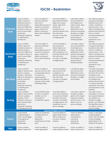 Physical Education Rubrics From Teacher Jet